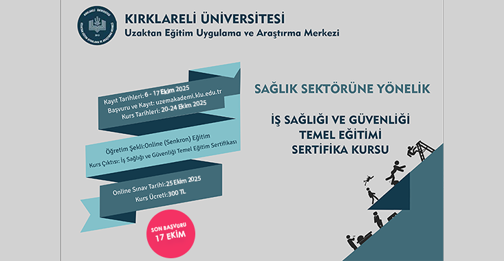 2025-2026 GÜZ İŞ SAĞLIĞI VE GÜVENLİĞİ TEMEL EĞİTİMİ (İSG) SERTİFİKA KURSU BAŞVURULARI... 1862 Okunma KLUZEM tarafından Sağlık Sektöründe yapılacak stajlara yönelik 16 saatlik Temel İş sağlığı ve... | 06/10/2025 |